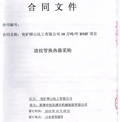 山東兗礦嶧山化工購(gòu)買(mǎi)我司波紋管換熱器